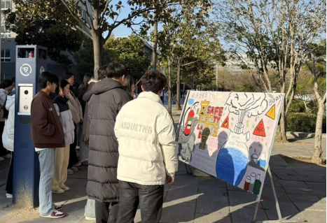 随后开展的展板科普活动同样内容丰富、形式新颖,精心设计的手绘安全展板迅速成为现场“人气打卡点”。展板以漫画形式呈现用电安全、设备操作禁忌、应急处置流程等内容,搭配醒目的安全警示标志,把专业安全知识转化为直观易懂的图文。不少师生驻足讨论,结合实训中遇到的实际场景交流经验,让安全知识从“被动浏览”转为“主动探讨”,真正实现了“看懂、记牢、会用”。