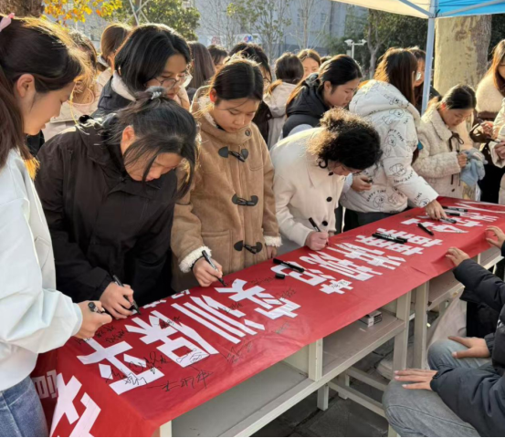 签名结束后,现场同学们共同手持签满名字的横幅合影,将安全承诺定格成生动的画面。