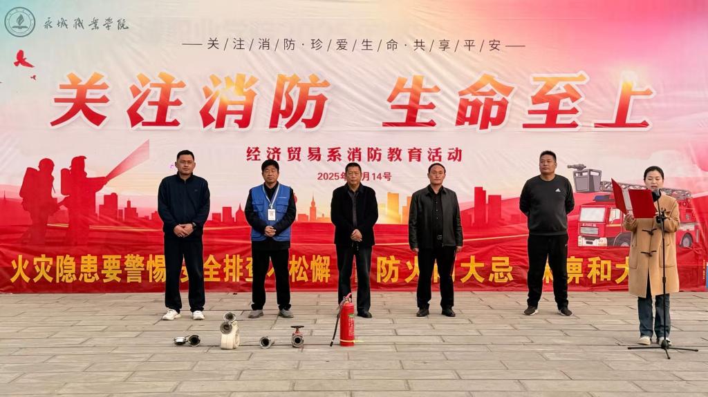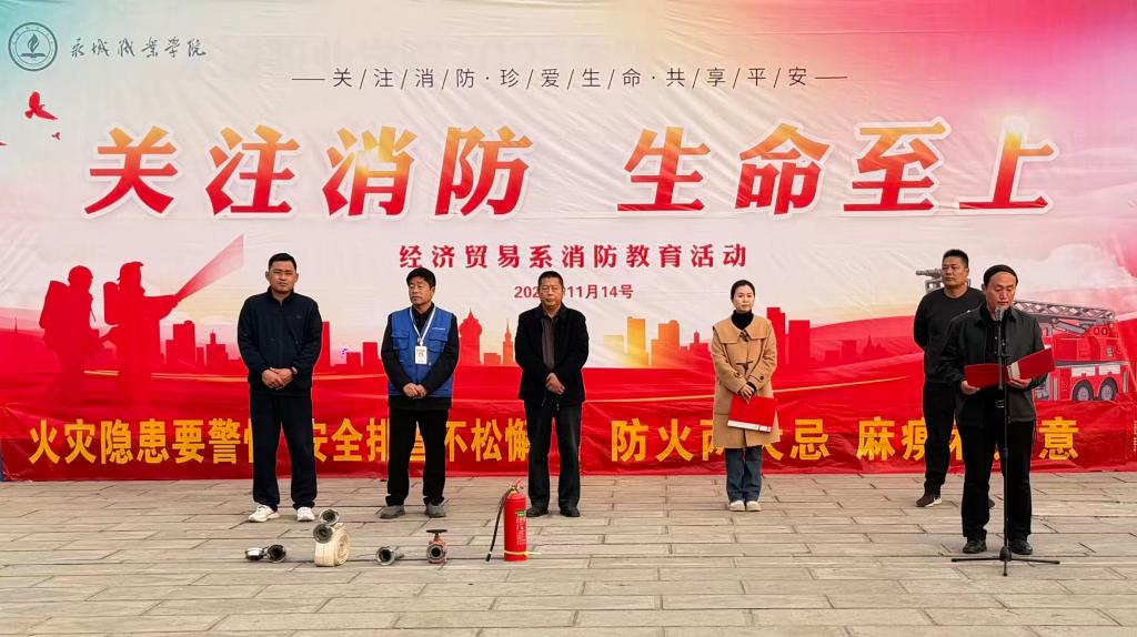 为强化师生消防安全意识,提升火灾应急处置与自救互救能力,筑牢校园安全防线,11月14日16:00,经济贸易系于六合园广场组织消防应急教育活动。我系党支部负责人冯正全、学生管理科长吴昊、保卫处负责人成政委、消防负责人于长生、河南弘兴工程技术服务有限公司消防工程师刘涛、经贸系全体辅导员与大一、大二学生参与活动,活动由我系副主任罗倩主持。