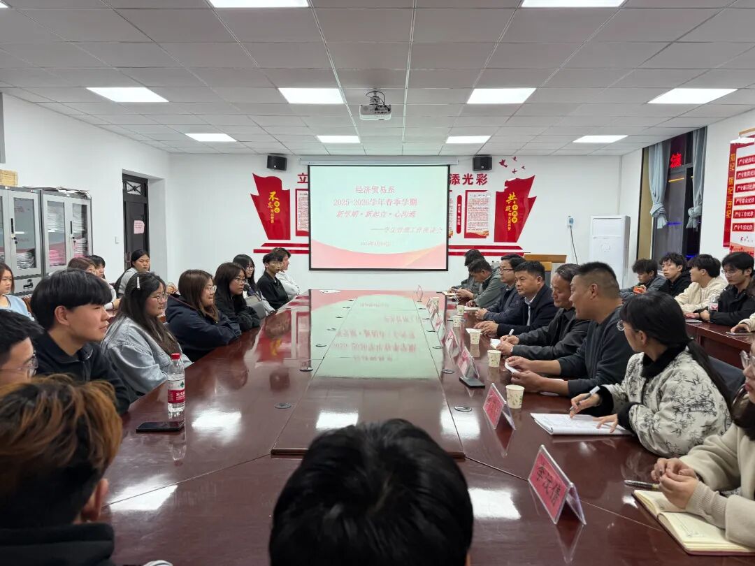 为进一步畅通师生沟通渠道,精准把握学生需求,提升学生管理服务质量,3月26日,经济贸易系在系部会议室召开以“新学期·新起点·心沟通”为主题的学生管理工作座谈会。会议邀请学院学生处负责人丁言、副处长赵志豪、科长苏永飞参会,系党支部负责人冯正全、专职辅导员及学生代表参加会议,会议由我系学生管理科长吴昊主持。