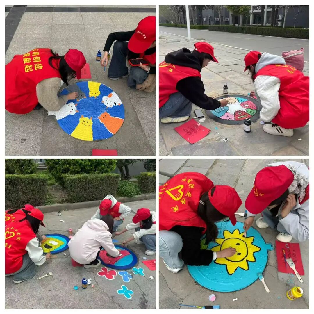 笔尖绘文明,井盖焕新颜。志愿者们化身“校园美容师”,以环保、文明、雷锋精神为创作核心,拿起画笔与颜料,为校园井盖换上别致新装。大家精心设计图案,将卡通、绿植等元素融入其中,原本灰暗单调的井盖,摇身变成校园靓丽的风景线。井盖彩绘以创意形式美化了校园公共空间,更传递了爱护环境、文明有礼的理念,为校园增添了青春与文明气息。