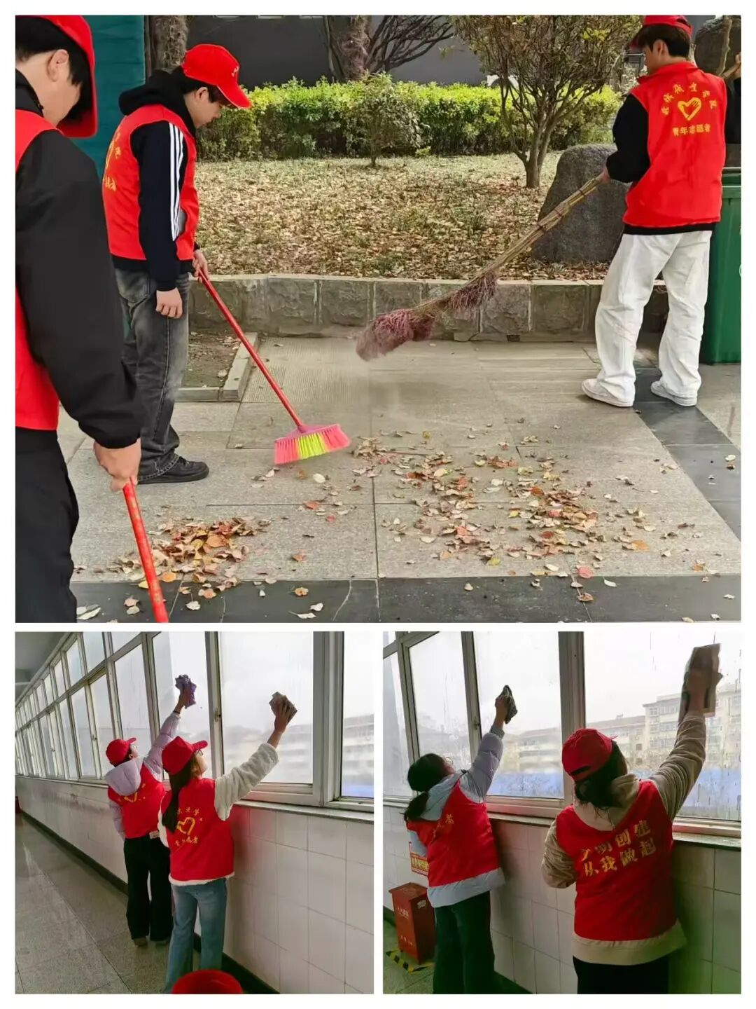 守护绿色校园,你我携手同行。 为进一步守护校园的碧水蓝天,志愿者们化身“护绿园丁”,齐心协力开展校园绿化提升行动。大家手持扫帚,认真清除纸屑、杂物与杂草,精心呵护每一寸草木生机。活动现场,志愿者们同步发出环保倡议,认真擦拭教学楼玻璃,呼吁师生从点滴做起,践行垃圾分类、节约资源与爱护绿植的良好习惯。大家的辛勤付出,不仅使校园焕发勃勃生机,更营造出了“保护环境人人有责,绿色家园共建共享”的浓厚氛围。